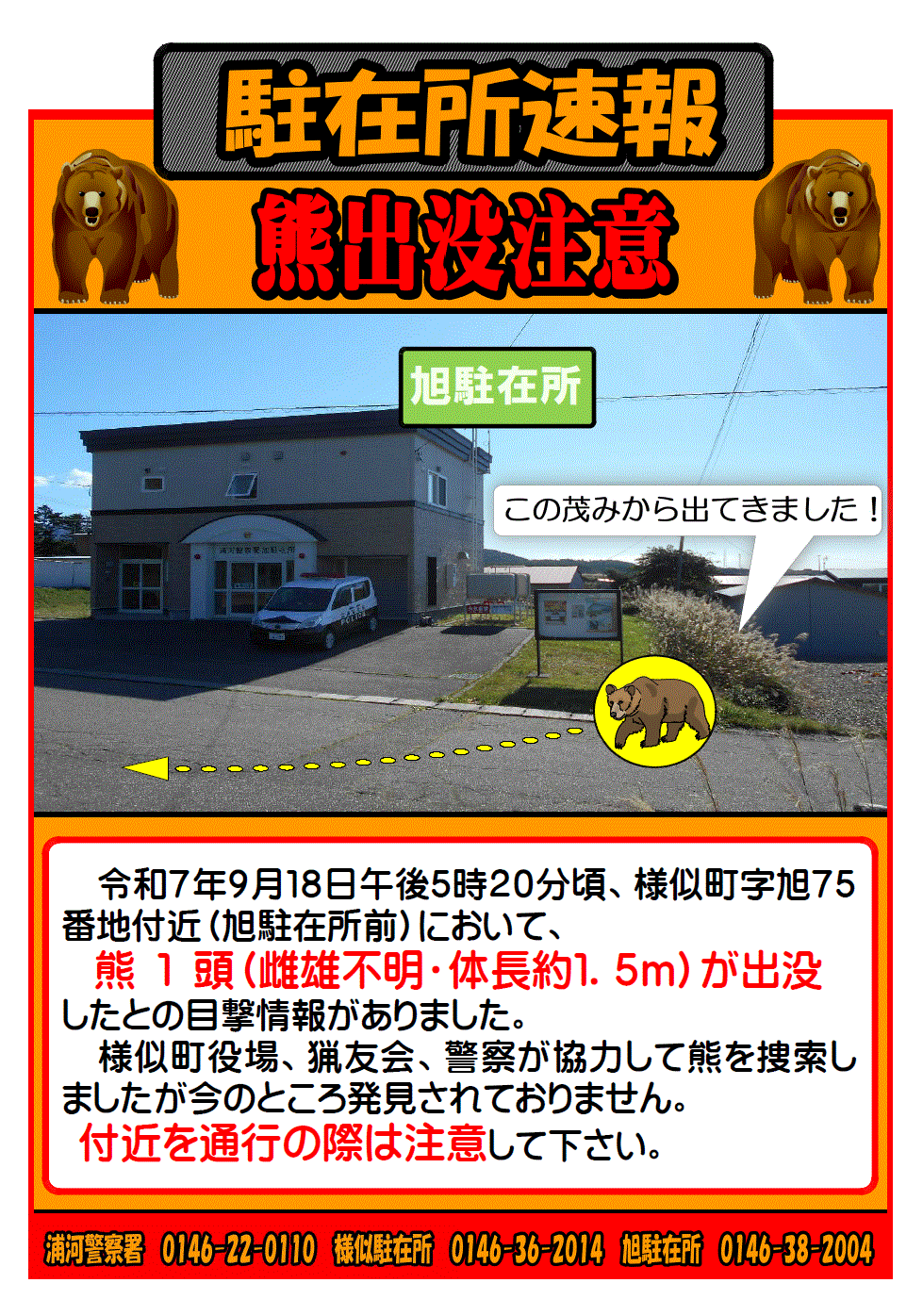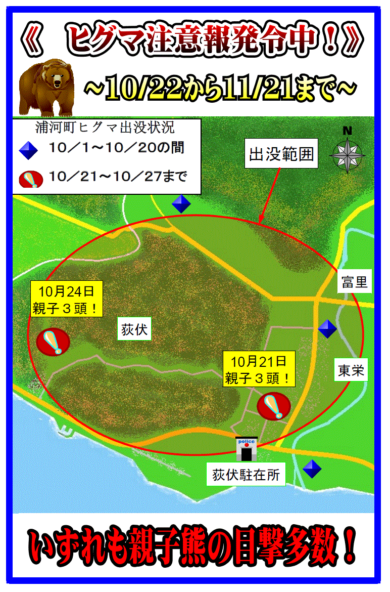 浦河警察署管内におけるヒグマの目撃情報をまとめています! お出かけの際は充分注意してください。 ←クリックで拡大します。