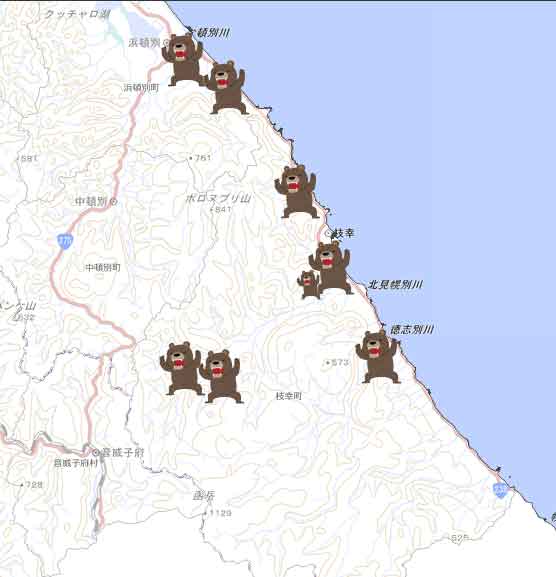 道内では例年、山菜取りや登山や山間部での作業中にヒグマに襲われて死傷する事案が発生しています。枝幸警察署管内でもヒグマの出没情報が多く報告されていますので、ヒグマの出没情報等をよく確認し、ヒグマによる事故に遭わないよう、十分に注意しましょう。