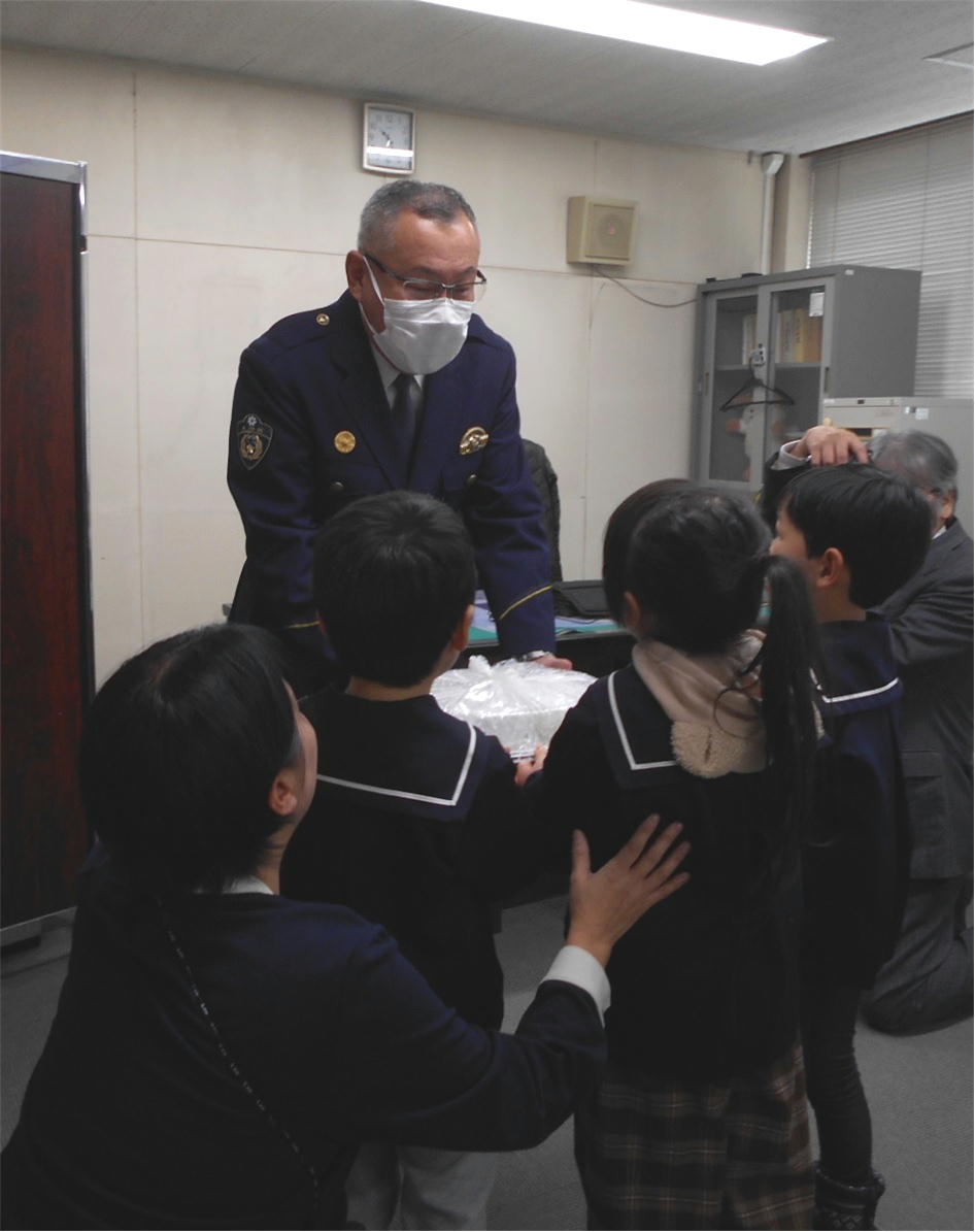 網走幼稚園の園児から、職員に対する感謝の気持ちとして手作りした「あんこ餅」が贈られました。職員は、園児からの激励に、治安維持への士気を大きく高めました。