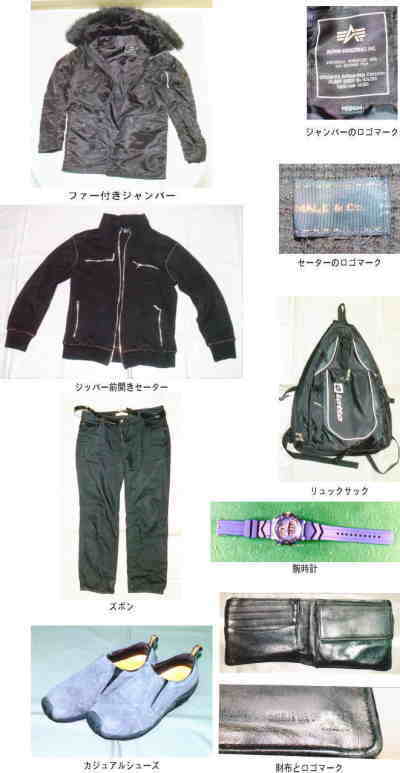 | 所持品など | 黒色ショルダーバッグ・黒色二つ折り財布・腕時計 | |||||