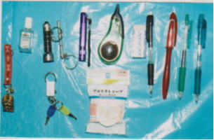 | 所持品など | 黒色リュックサック、眼鏡(着用・ケース入り)、革製茶色財布、サングラス、帽子、着替え(下着など)、タオル、文房具など | |||||