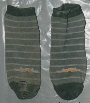 | 着衣 | 黒色半袖シャツ(サイズM)、黒色ジーンズ(リーバイス)、茶色ベルト、靴下(サンフラワーフェリーのプリント)、白色スニーカー(ナイキ、サイズ29.0㎝) | |||||
