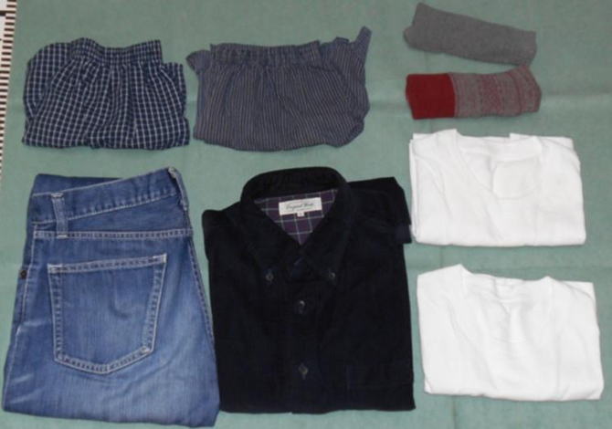 | 所持品など | グレー色バック、眼鏡2個、腕時計、お守り(多賀神社)、電気シェーバー(パナソニック)など | |||||