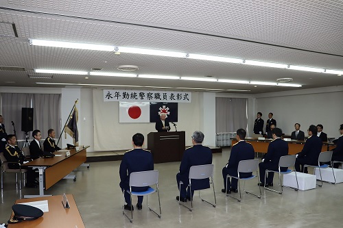 11月21日、杉川委員が、旭川方面本部で開催された永年勤続警察職員表彰式に出席し、挨拶を述べました。