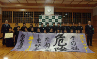 北海道北広島高等学校書道部が、特殊詐欺被害防止を訴える書道パフォーマンスを行いました。