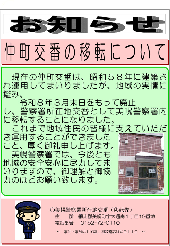 美幌警察署管内交通死亡事故ゼロ日達成