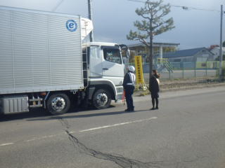 上美幌駐在所前において、大型トラックを対象に交通事故防止の啓発活動を実施しました