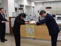 北海道銀行恵み野出張所の行員に対し、感謝状を贈呈しました。