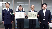 性的姿態等撮影未遂事件捜査協力で感謝状を贈呈