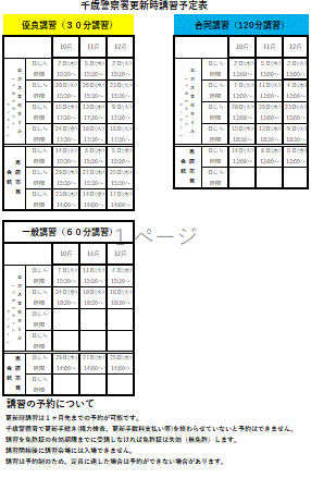 運転免許証の有効期間の満了日までに更新手続きを終え、更新時講習を受講していなかった場合は、免許は失効しますのでご注意ください。 (講習日程をクリックするとPDFが表示されます)