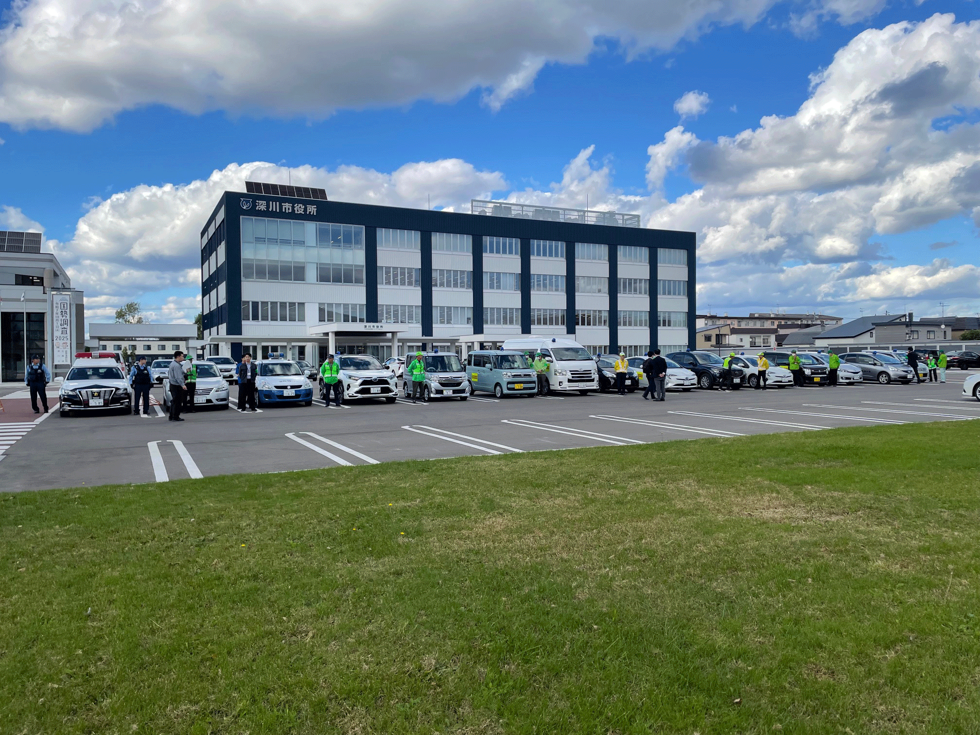10月15日、妹背牛町交通安全・防犯パレードに参加し、町内の方に交通安全や犯罪被害防止について呼びかけました。10月に入ってから、気温も急激に下がり始めました。早めのタイヤ交換を実施し、交通事故防止を図りましょう。