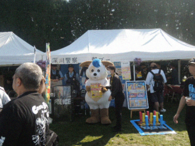 5月5日、JAきたそらちのキャラクター「こめッち」と深川地区安全管理者協会のマスコット「あんぜんくん」が応援に来てくれ、交通安全、山菜採り等に伴う山の遭難防止、ヒグマによる被害防止等の啓発をしました。また、ちびっ子たちにはパトカーの乗車やミニ制服の着用体験をしてもらい、皆さま方に大人気でした。交通安全や各種事故防止について、引き続き皆さまのご理解とご協力をお願いいたします。