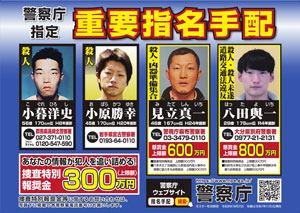 指名手配被疑者の発見に向けた捜査活動には、国民の皆さんの御協力が是非とも必要です。