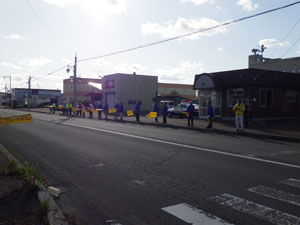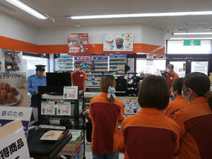 9月11日(木)、羽幌町「セイコーマートよこやま」において、羽幌町3店舗、苫前・古丹別で2店舗、初山別村1店舗、鬼鹿町1店舗の合計7店舗から約15名の従業員の方々が集まり様々な事案を想定した訓練を行いました。