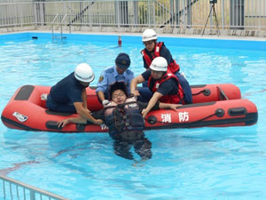 9月1日(月)、初山別村・村民プールをお借りしまして北留萌消防組合消防署初山別支署、初山別村役場、羽幌警察署合同の水難救助訓練を行いました。