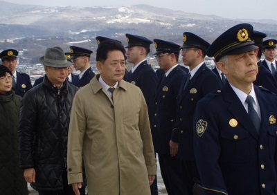 1月8日、全委員が、函館方面本部庁舎屋上で実施した令和8年函館方面本部年頭点検を視察しました。 警察官の職務執行に必要な装備品等が適正に使用・管理されていることを確認しました。