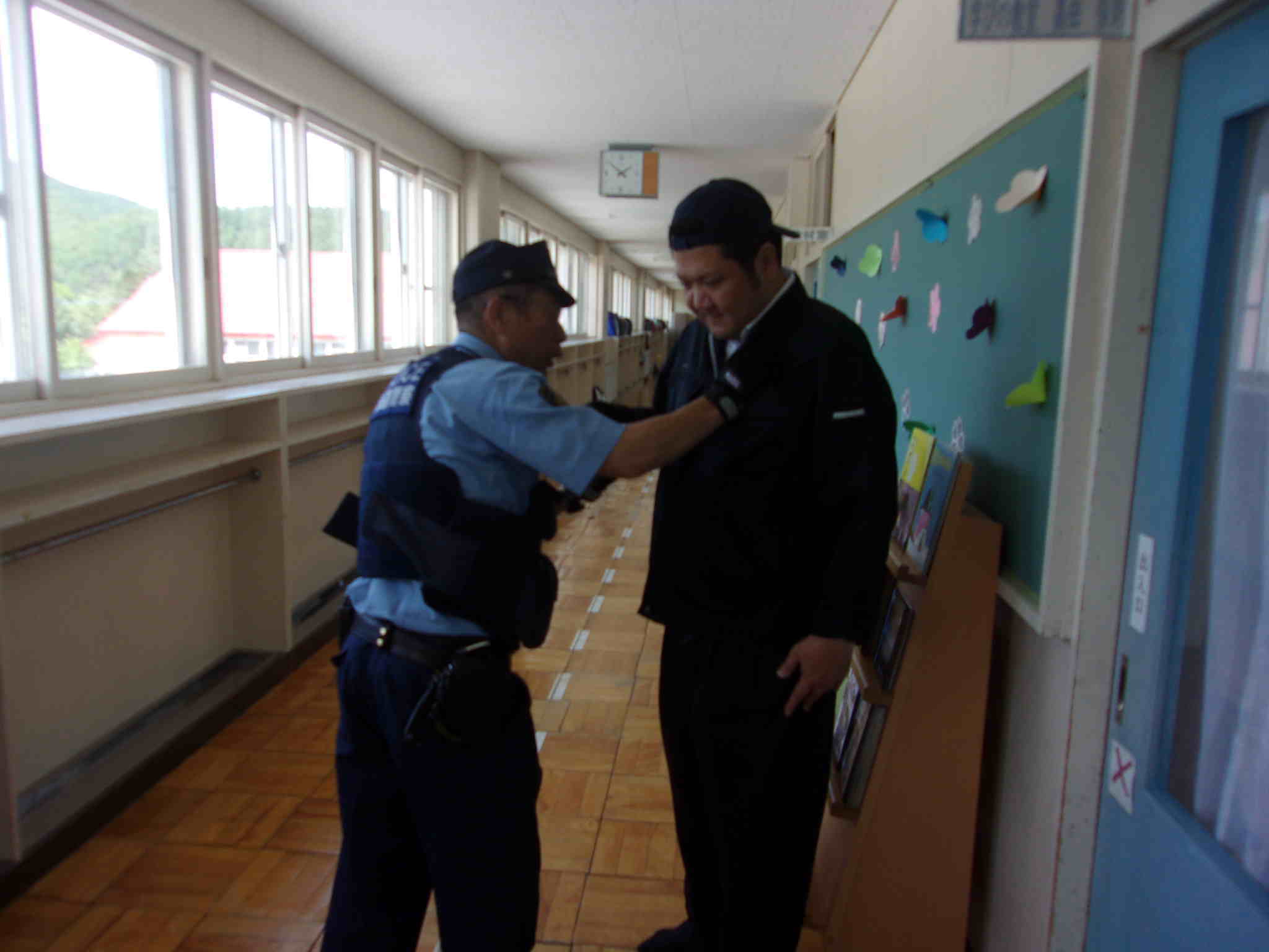 滝上小学校に不審者が侵入したことを想定し、警察への通報や教職員等の対応要領について訓練しました。