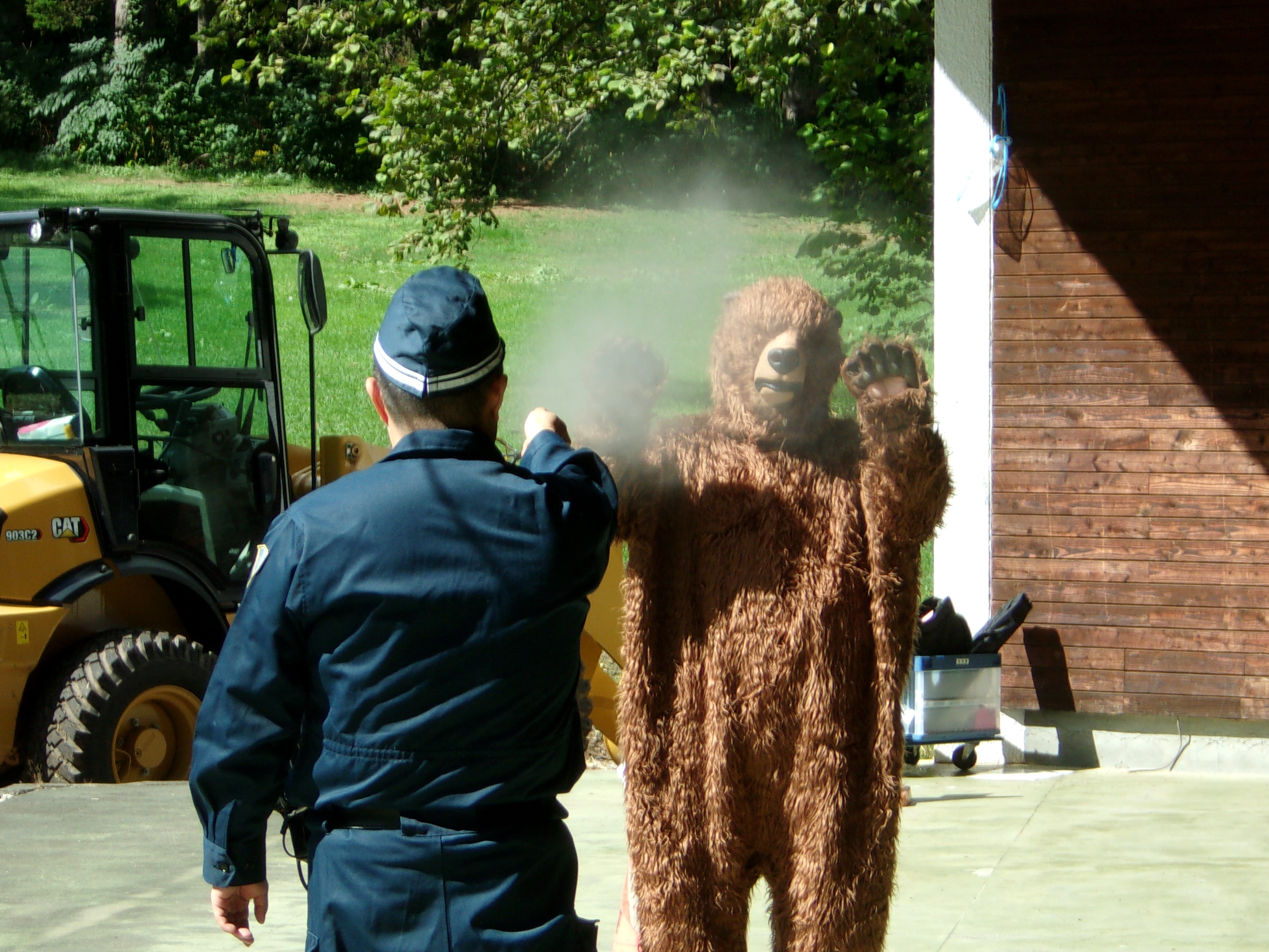 紋別警察署では、紋別市、猟友会紋別支部等と合同で、市街地にヒグマが出没した際の連携、対応要領に関する訓練及び意見交換を実施しました。熊用スプレーの使用要領等と合わせて、ヒグマ出没時の適切な対応を確認しました。滝上町においても同様の訓練を実施しています。