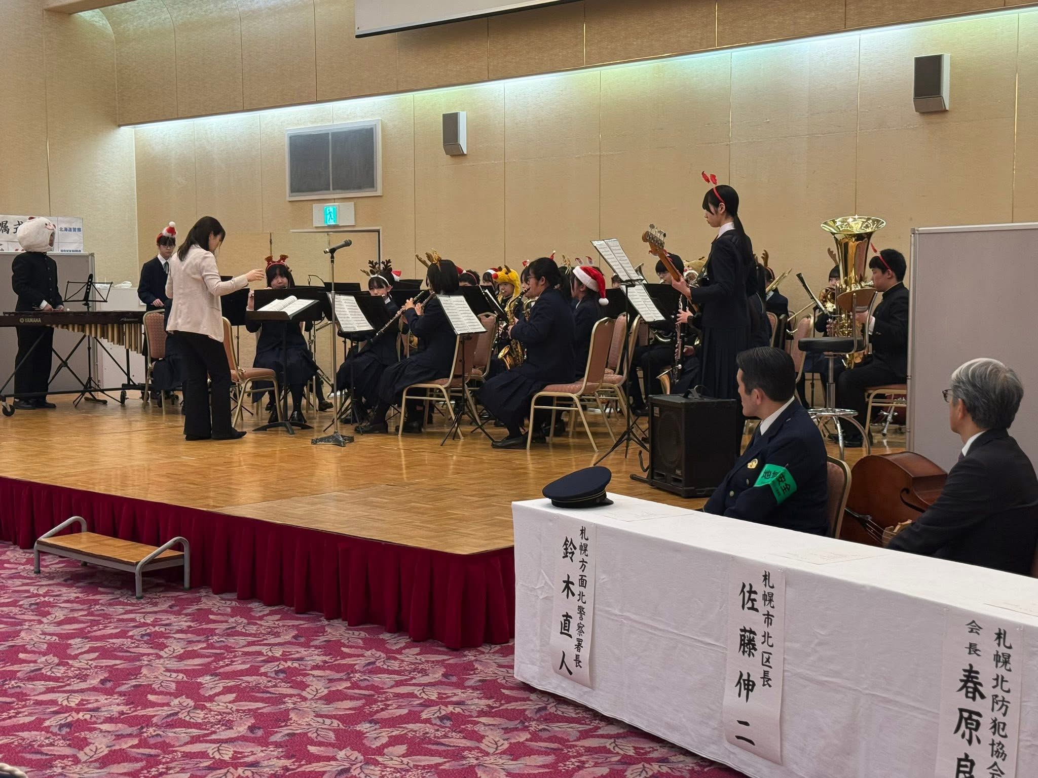 委嘱式に伴い、北辰中学校のブラスバンドの演奏など行われ、その後、24条商店街において、徒歩での合同パトロールやDJポリスとして、防犯対策を呼びかける啓発活動を実施しました。