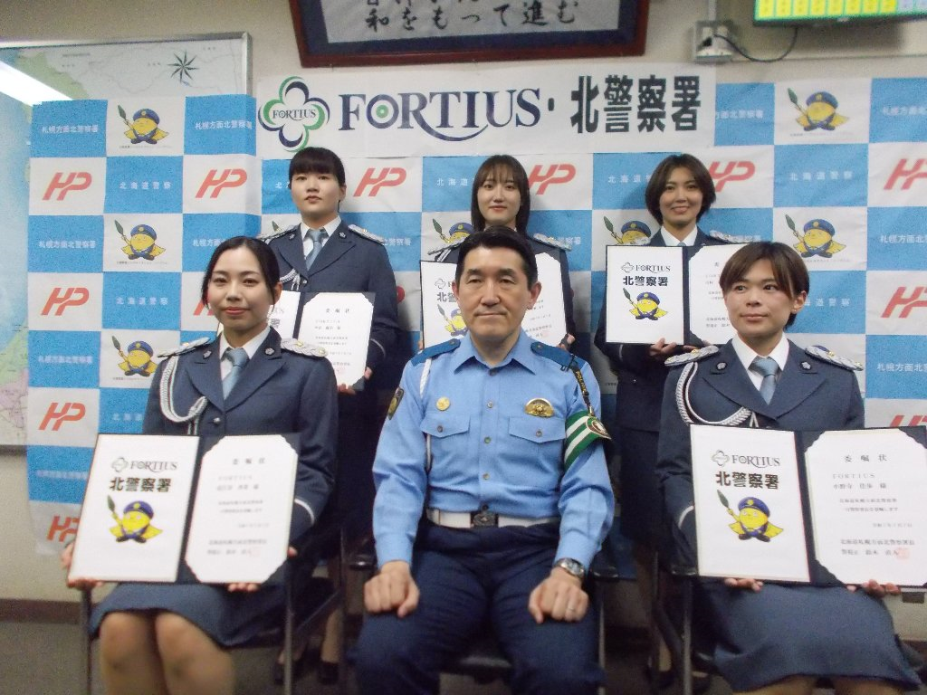 窓口に訪れた客の言動から特殊詐欺被害を疑い、積極的な声かけを行い警察への通報をしたことにより特殊詐欺を未然に防止した、北海道信用金庫及び北洋銀行行員のみなさまに対し、署長感謝状を贈呈させていただきました。