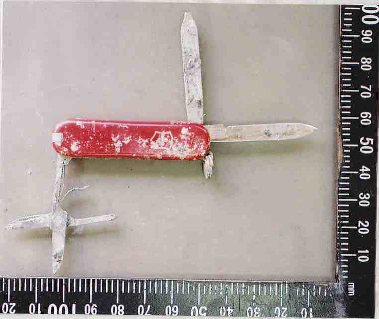 | 所持品等 | 10円硬貨2枚、使い捨てライター2個、十徳ナイフ | ||