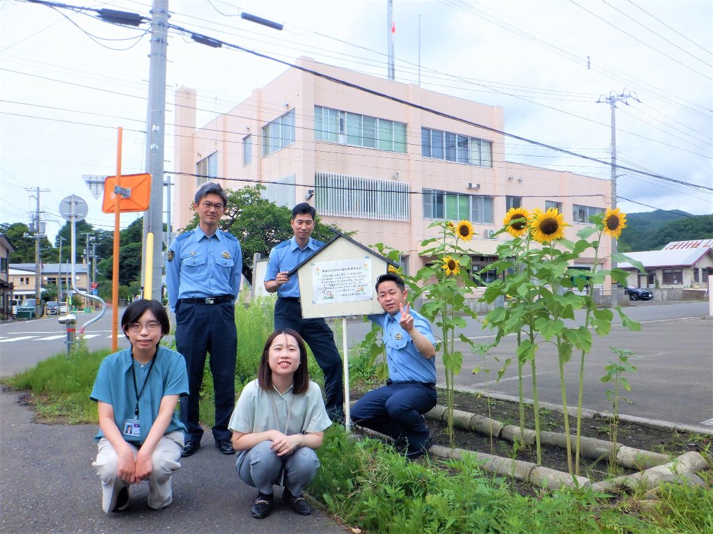 今年も交通安全や命の尊さを伝える活動の一環として警察署駐車場の花壇にひまわりの種を植えました。