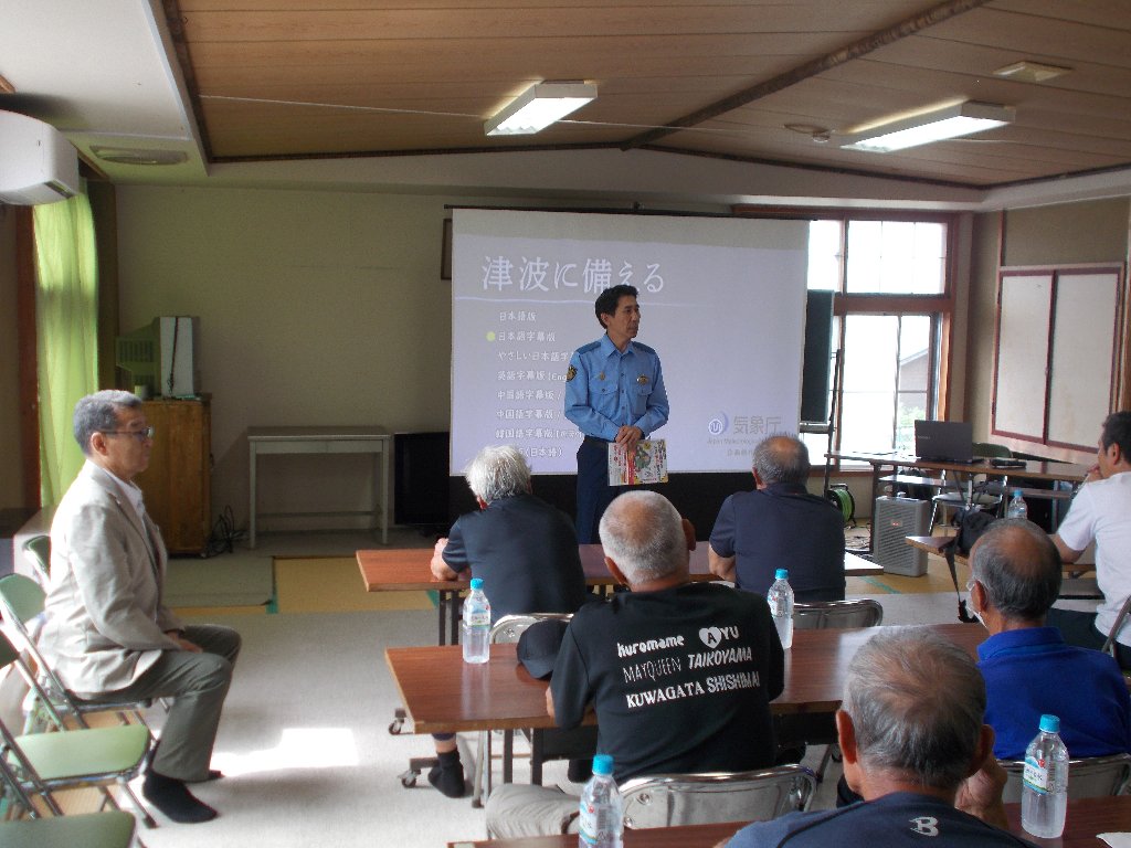 松前町字小島支所において実施された「松前町赤神地区津波防災訓練」に参画し、警察からの防災講話として、津波災害を想定した早期避難など、沿岸地域における防災意識の向上を訴えました。