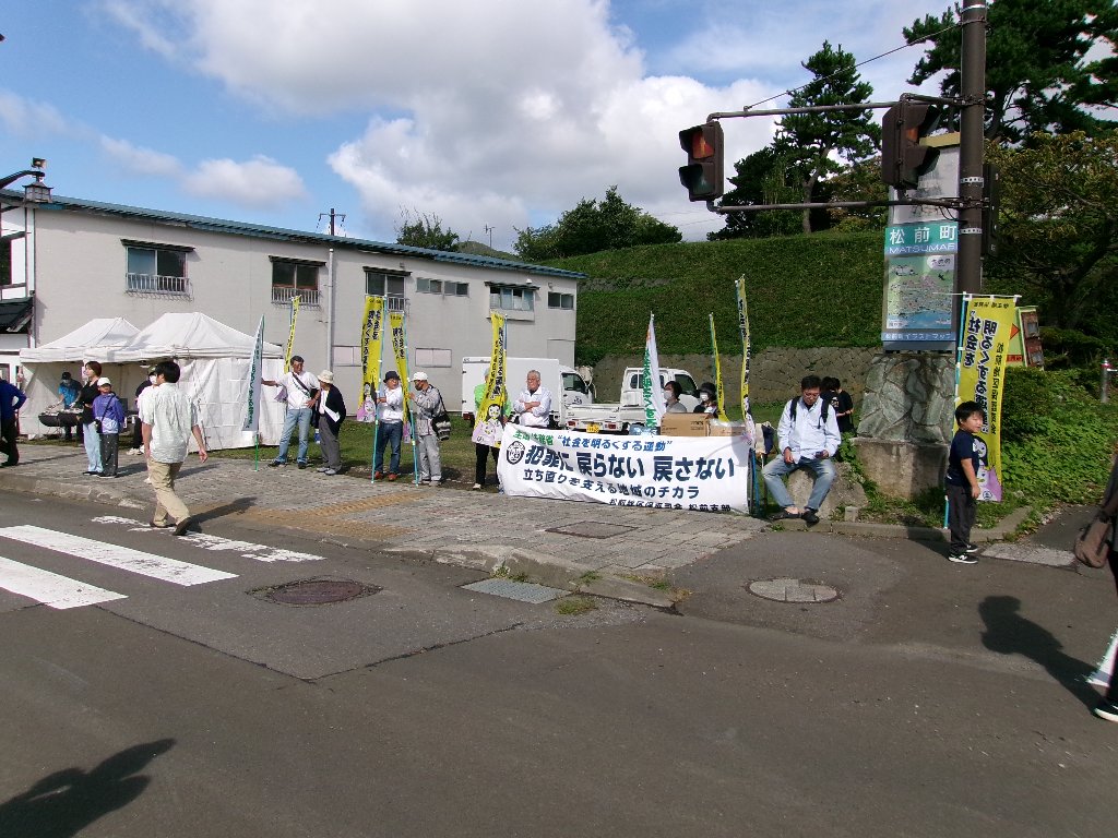 「第9回松前城下マグロまつり」会場において、松前地区保護司会松前支部の方々とともに、防犯啓発活動を実施しました。