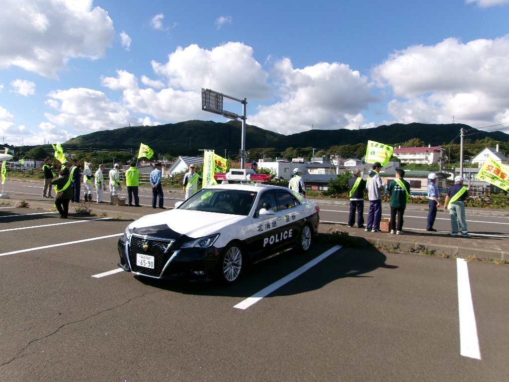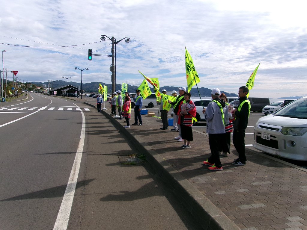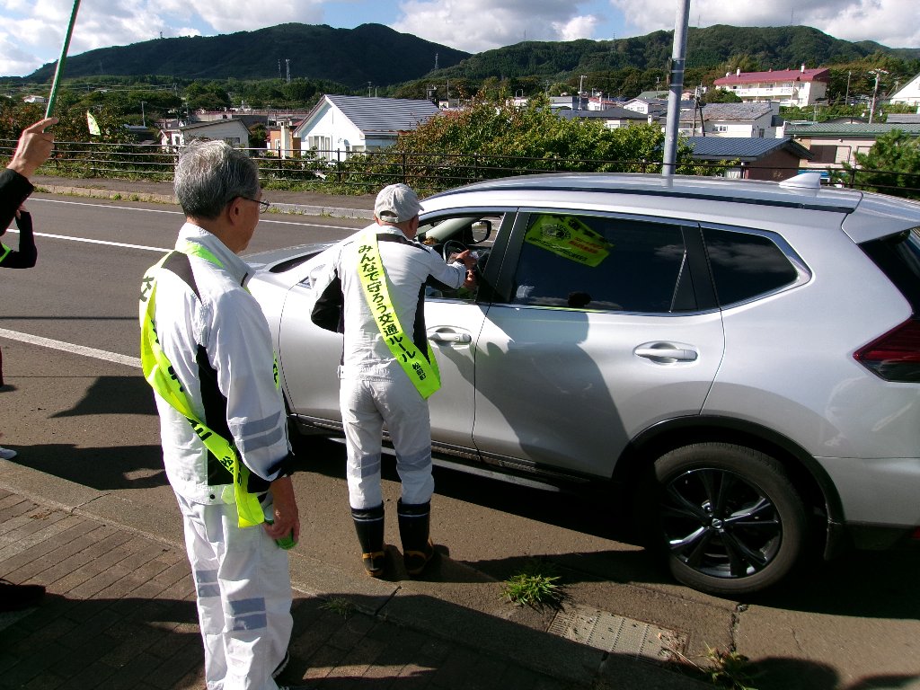 秋の全国交通安全運動期間中、道の駅「北前船松前」前において、松前町議会議員の方々とともに、交通事故防止に向けた啓発活動を実施しました。
