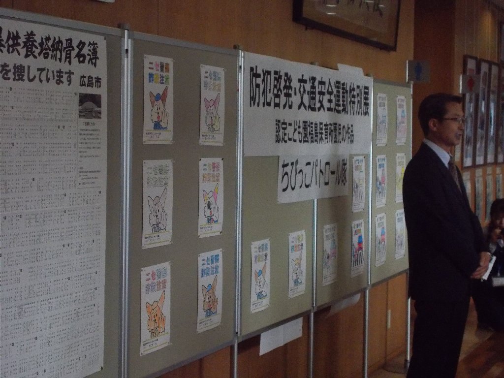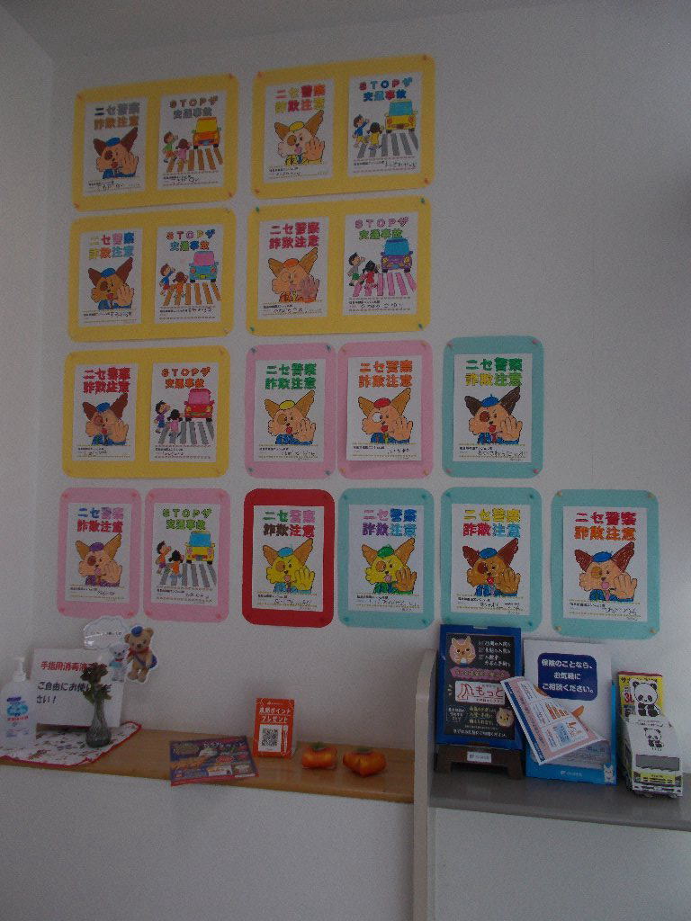 認定こども園福島保育所の園児とともに福島町役場において、特殊詐欺被害防止に向けた塗り絵掲示及び街頭啓発を実施しました。