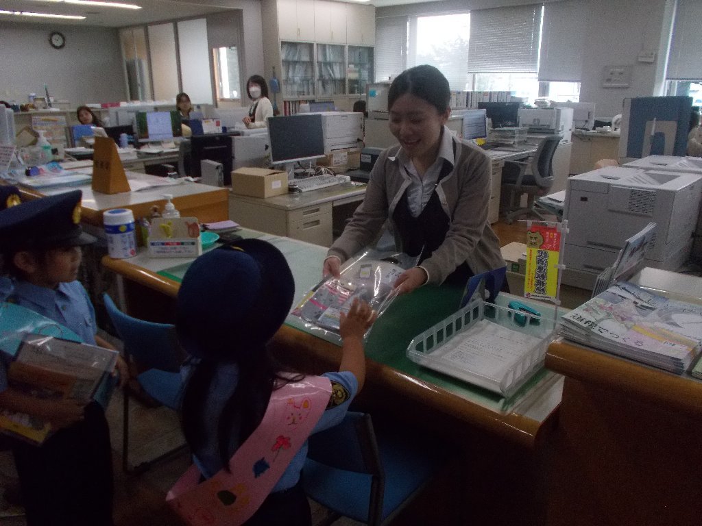 認定こども園福島保育所の園児9名を「福島町ちびっこパトロール隊」に任命し、福島郵便局において特殊詐欺被害防止に向けた街頭啓発を実施しました。