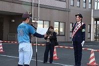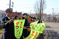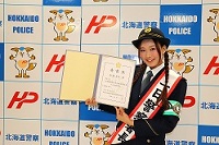 当署では、11月13日にHTBの朝の情報番組イチモニ!!でレポーターを担当しているモデルの高橋まりもさんに「一日警察署長」として交通安全運動街頭啓発を実施しました。 まりも署長は13日から実施された「冬の交通安全運動」のセーフティーコールや中標津町内の幼稚園児に向けて、交通安全教室を行いました。 セーフティーコールでは、北海道フロンティアリーグで活動しているプロ野球チーム「別海パイロットスピリッツ」の選手による交通安全宣言が行われました。