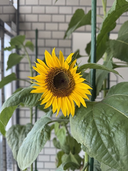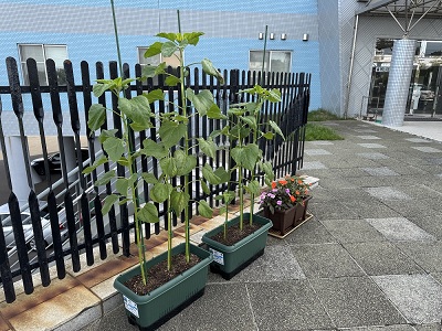 また、ひまわりとは別のプランターには、サンパチェンスという花(花言葉は「太陽のように輝く笑顔」)を植えましたので、来庁された方の癒しになればと思います。