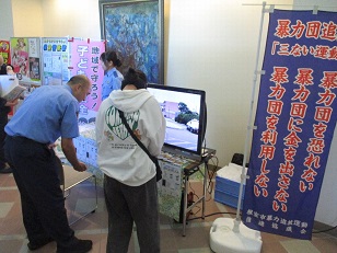 根室市総合文化会館で実施された第47回消費生活展に参加し、警察ブースを設けて、特殊詐欺被害防止や暴力団追放、サイバーセキュリティ対策等に関する啓発活動を実施しました。