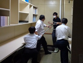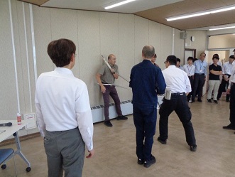 不審者への対応要領や、さすまたの使用方法を説明した後、実際に不審者が現れた想定に基づき対応訓練を実施しました。
