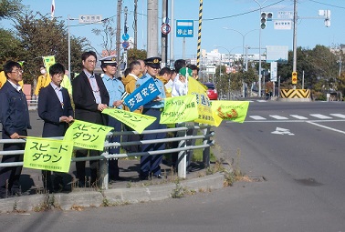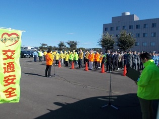 10月16日から10月25日までの10日間実施される秋の輸送繁忙期の交通安全運動に伴い、市や根室振興局など関係団体とともに出動式を実施しました。