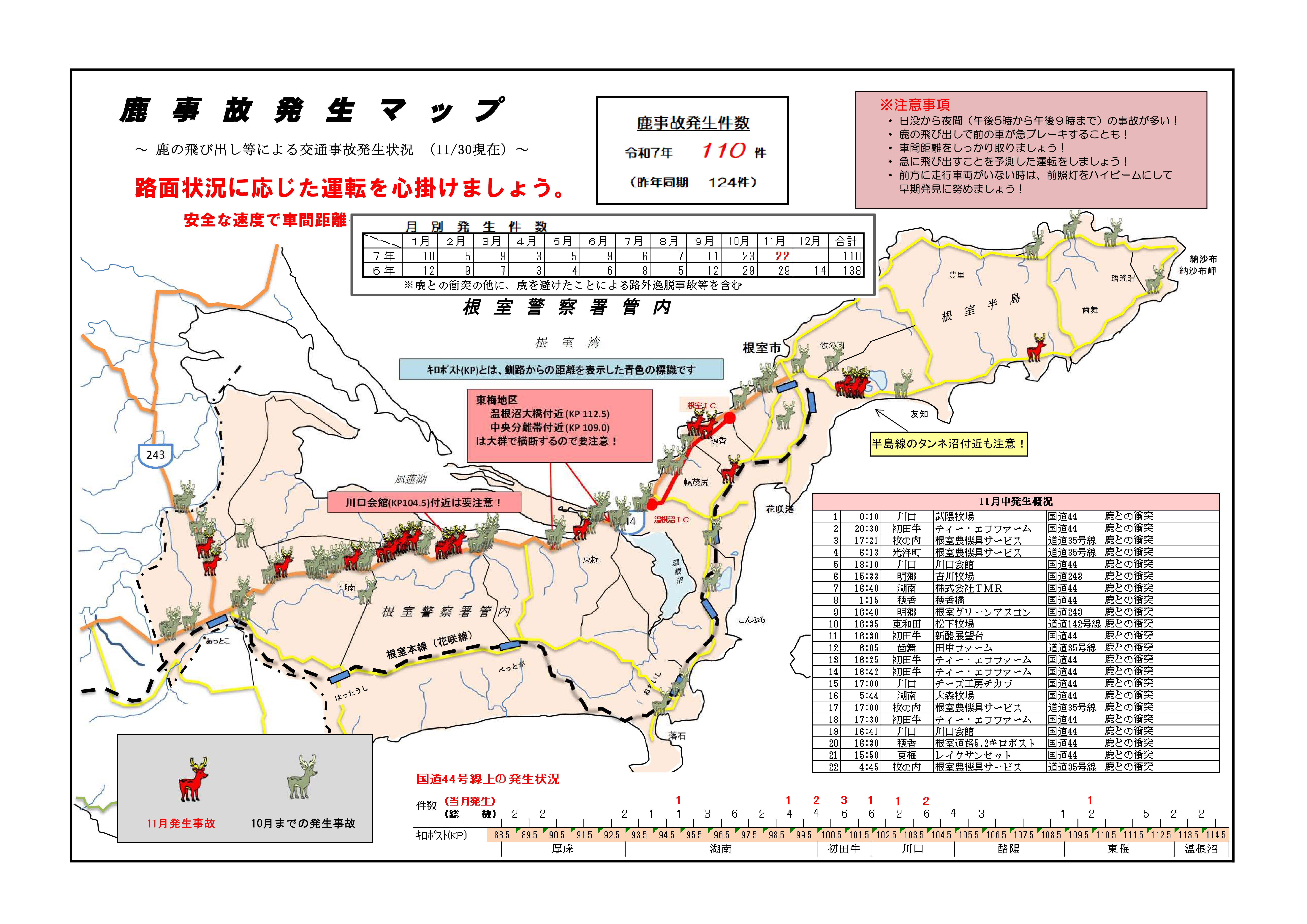| PDF版シカ事故マップ(520KB)はこちらをクリック |