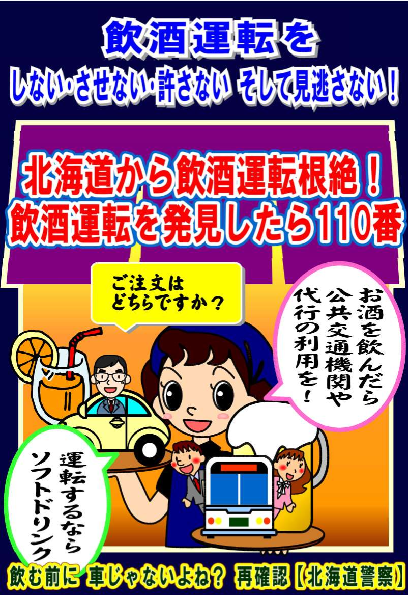 一人一人が「飲酒運転をしない、させない、許さない、そして見逃さない」ことを強く意識して、北海道から飲酒運転を根絶しましょう。
