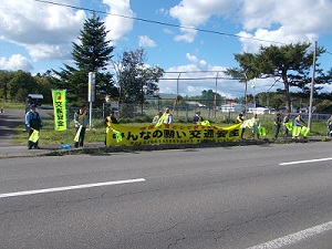 雄武町字幌内において、旗の波運動を実施しました。