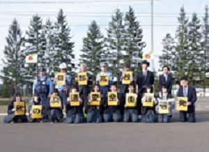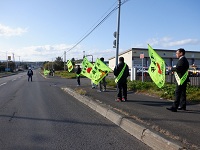 雄武町役場前において開催された旗の波運動に参加しました。1件でも交通事故が少なくなるよう啓発活動を続けます。