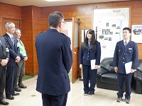 興部高校の生徒さん2名に1日警察官を委嘱し、町内の事業所などを訪問して啓発活動を行いました。