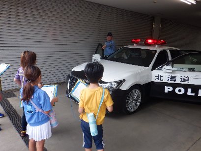 普段見られない庁舎内の様子や、警察官のお仕事内容、装備品使用やパトカー乗車体験をしていただきました。