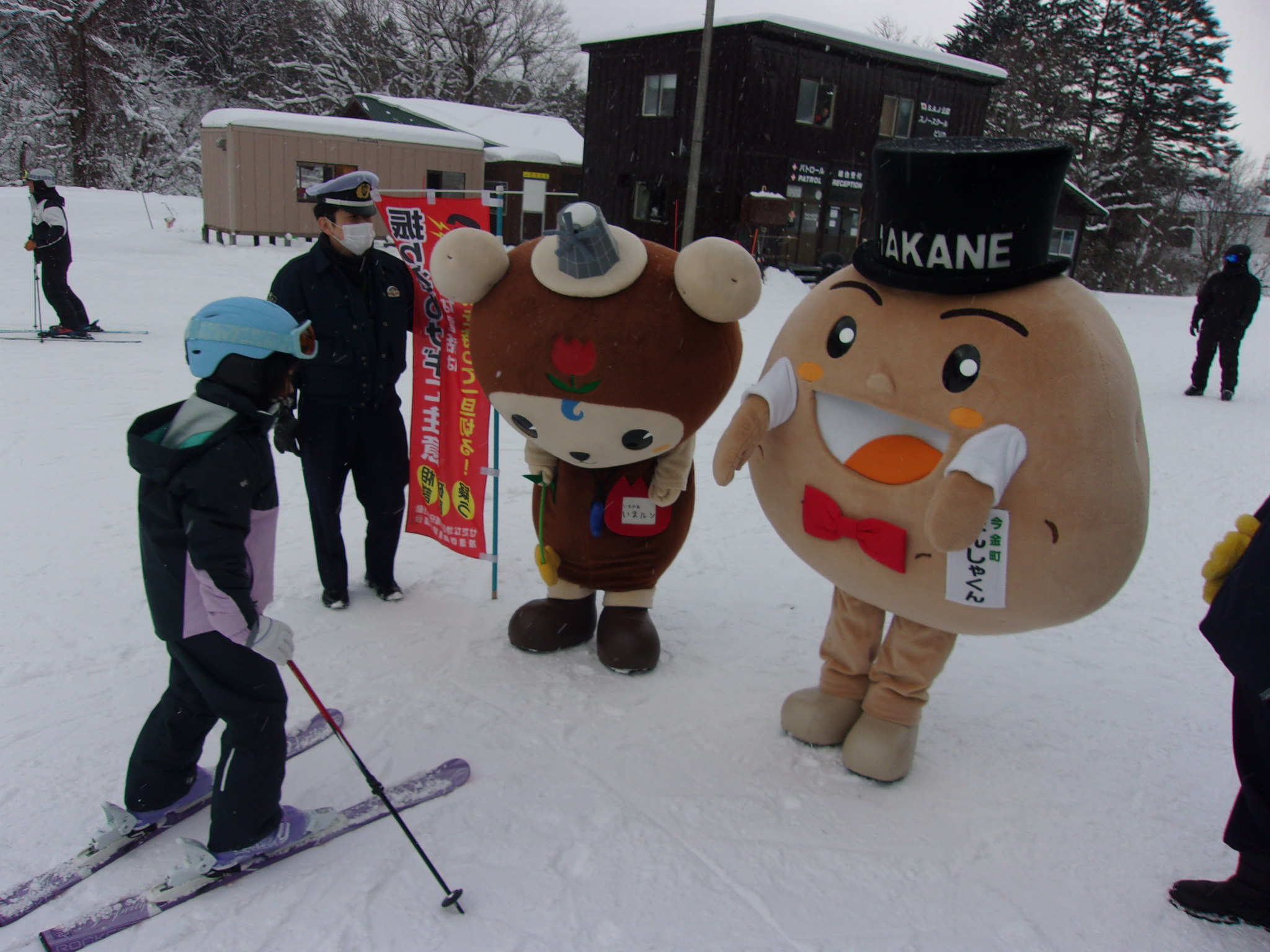 会場では、せたな警察署マスコットキャラクターのせたなタイガと北海道警察マスコットキャラクターほくとくんを交え、来場者に防犯グッズなどを配布しました。