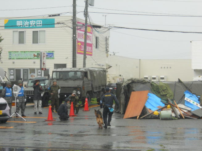 防災週間に実施された自衛隊主催の防災フェスティバルに北海道警察本部機動隊の隊員と災害救助犬等も署員と参加し、防災啓発活動を実施しました。