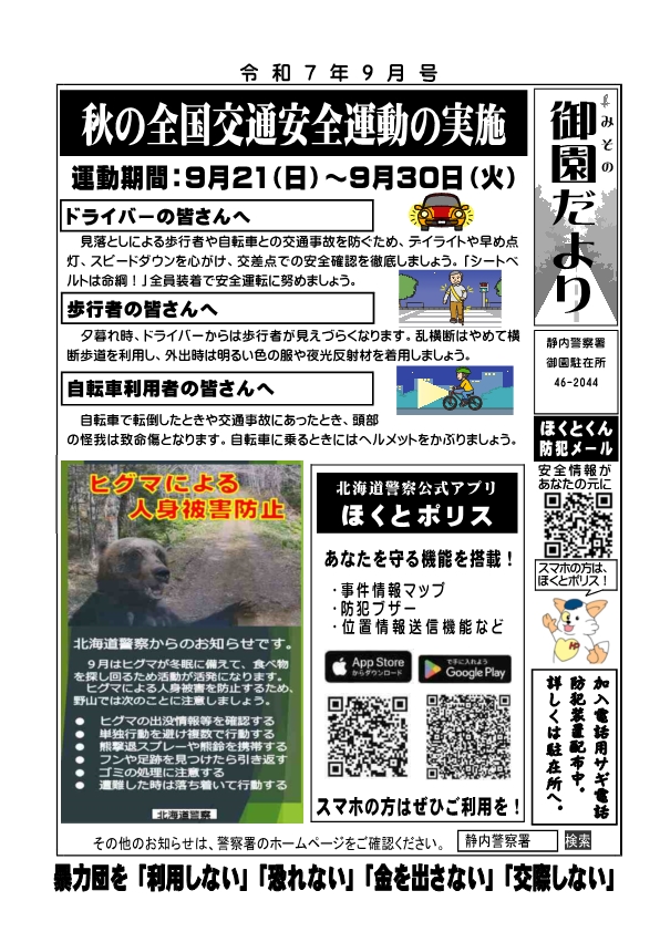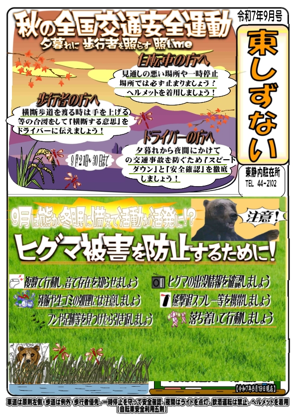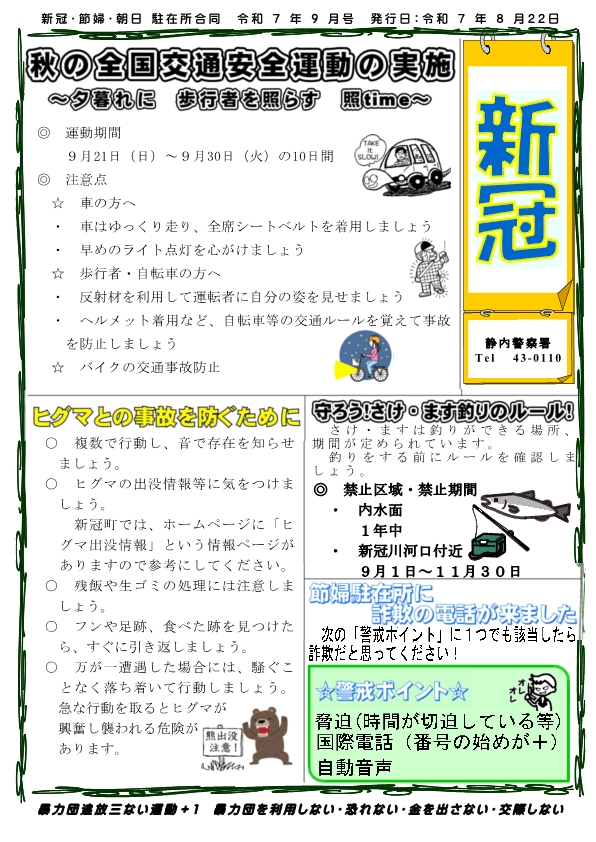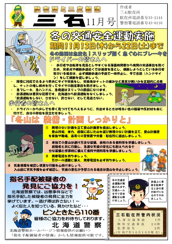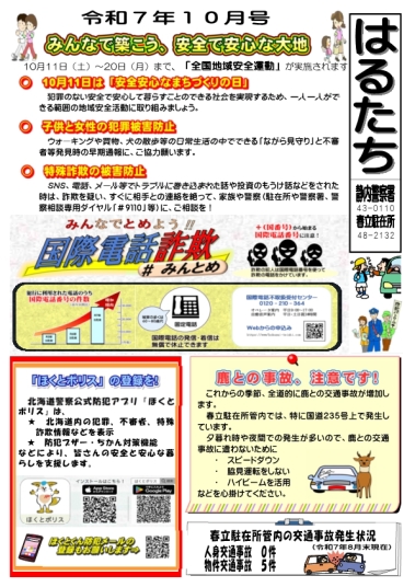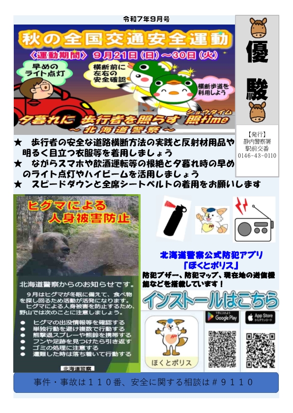 静内警察署の各交番・駐在所では、毎月広報誌を作成してタイムリーな情報を皆様にお届けしています。
