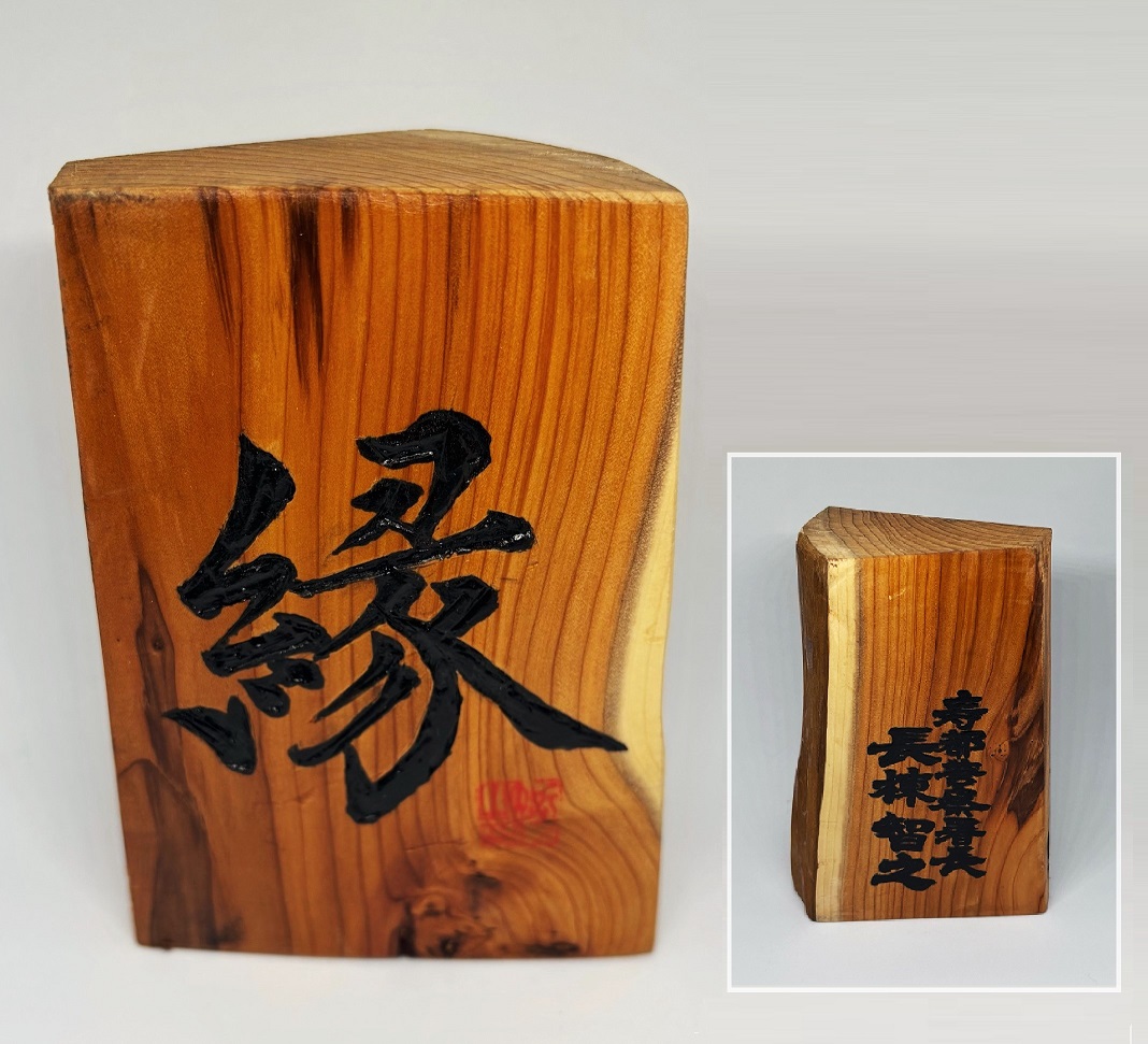 先日、「イチイの木」を用いて「一文字アート」を制作する機会がありました。何を書こうか考えながら過ごすこと数日、ふと頭に浮かんできたのは、「縁」(えん)の文字でした。