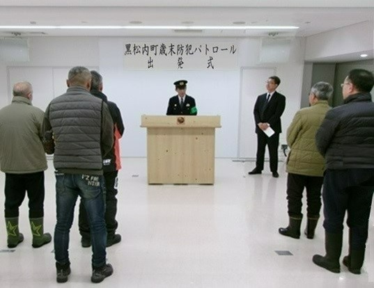防犯パトロール出発式(昨年暮れ、黒松内町で)