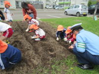弟子屈町・標茶町の保育園の皆さんたちと一緒に、被害者も加害者も生まない社会が実現するようにと願いながら種をまきました。