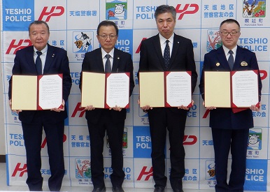令和7年12月19日、当署において、天塩町、遠別町及び幌延町の3町と天塩警察署が相互に協力して犯罪被害者等を支援するための協定締結式を実施しました。