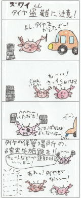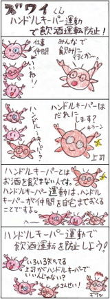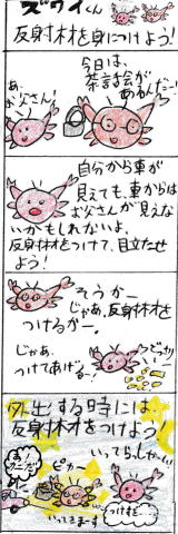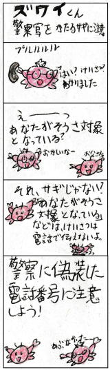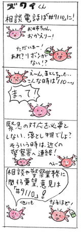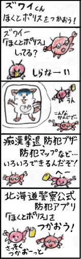 | 名前の由来は… 浦河警察署マスコット「うさえりーも」は、浦河警察署管内の3町(浦河町、様似町、えりも町)の頭文字を引用し、組み合わせたものです。「りー(lee)」という英単語には「(主に風からの)避難、保護、物陰、風に当たらない所」という意味があり、「浦河警察署員が事件事故災害から地域住民を守る!」という強い意志を表しています。 |